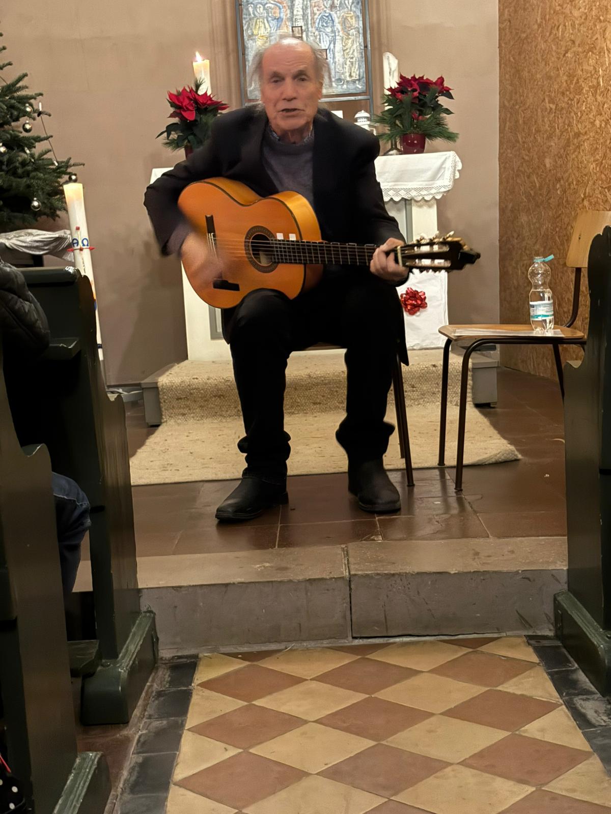 Danilo zog das Publikum dabei mit seiner italienischen Lebensart in seinen Bann und spielte auf Wunsch auch Titel wie „Bella Ciao“ oder „Tarantella Napoletana“ schloss den Abend mit dem spanischen Weihnachtslied Feliz Navidad aus dem Jahr 1970 geschrieben von dem puerto-ricanischen Sänger und Gitarristen José Feliciano. Dabei konnten sich auch die jüngeren Zuschauer nicht mehr auf den Sitzen halten und nach einem ersten tosenden Applaus, gab es den Titel nochmal als Zugabe. Danilo brachte Erinnerungen kurz vor Weihnachten auf die kleine Bühne in der Kulturkapelle.