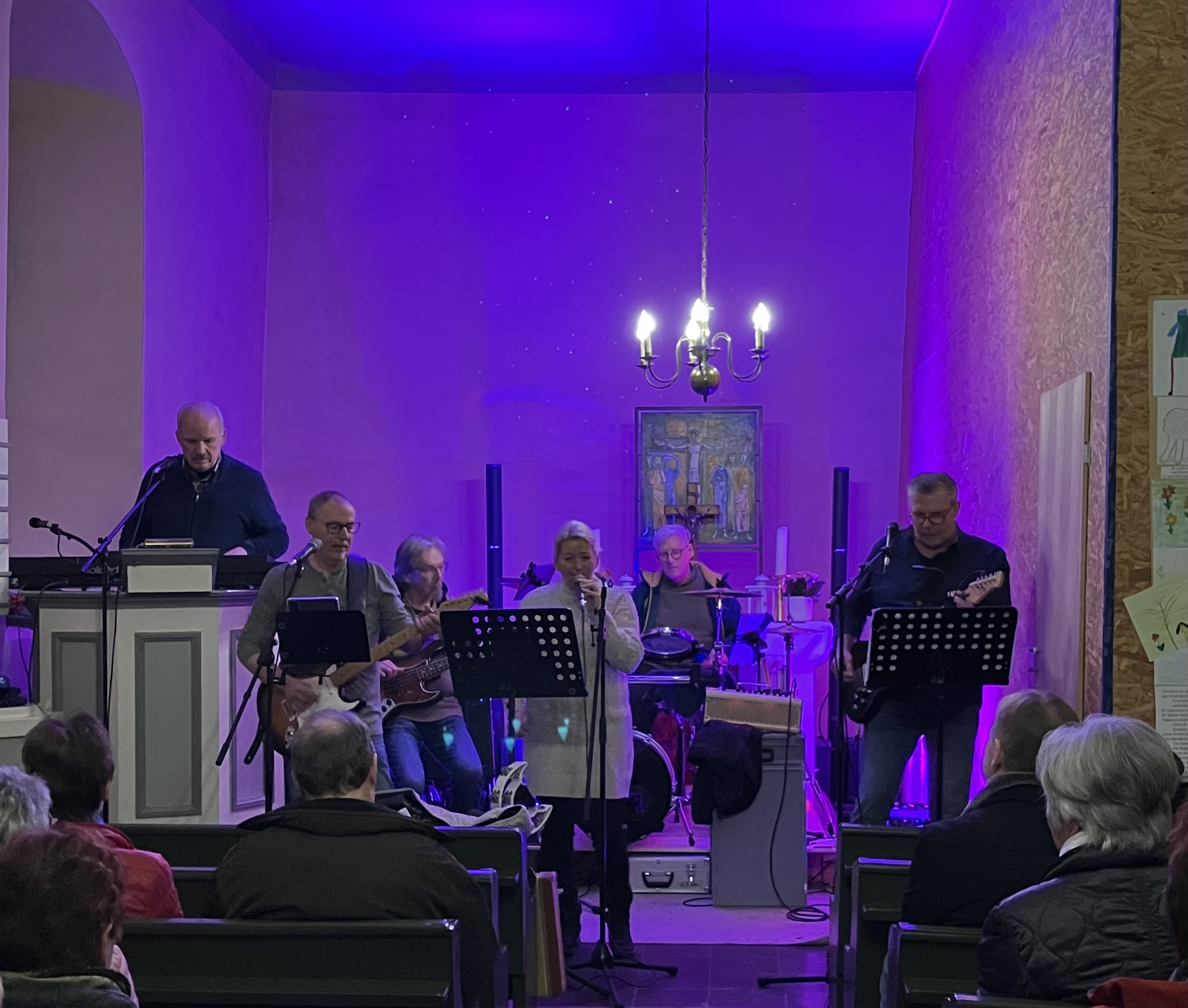Für einen besonderen Lacher sorgte Keyboarder Torsten Macke, der kurzerhand mitsamt seinem Instrument auf die Kanzel auswich – ein spontaner Einfall, der das Publikum amüsierte und für eine lockere Atmosphäre sorgte. Insgesamt war das Konzert ein voller Erfolg und unterstrich einmal mehr die Bedeutung der Kapelle als kulturellen Treffpunkt im Ort, die im Übrigen diesmal in bunte Farben gehüllt war.